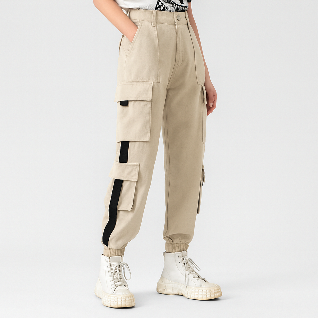• 機能的デザイン: 大きめのカーゴポケットが実用性とおしゃれを両立。