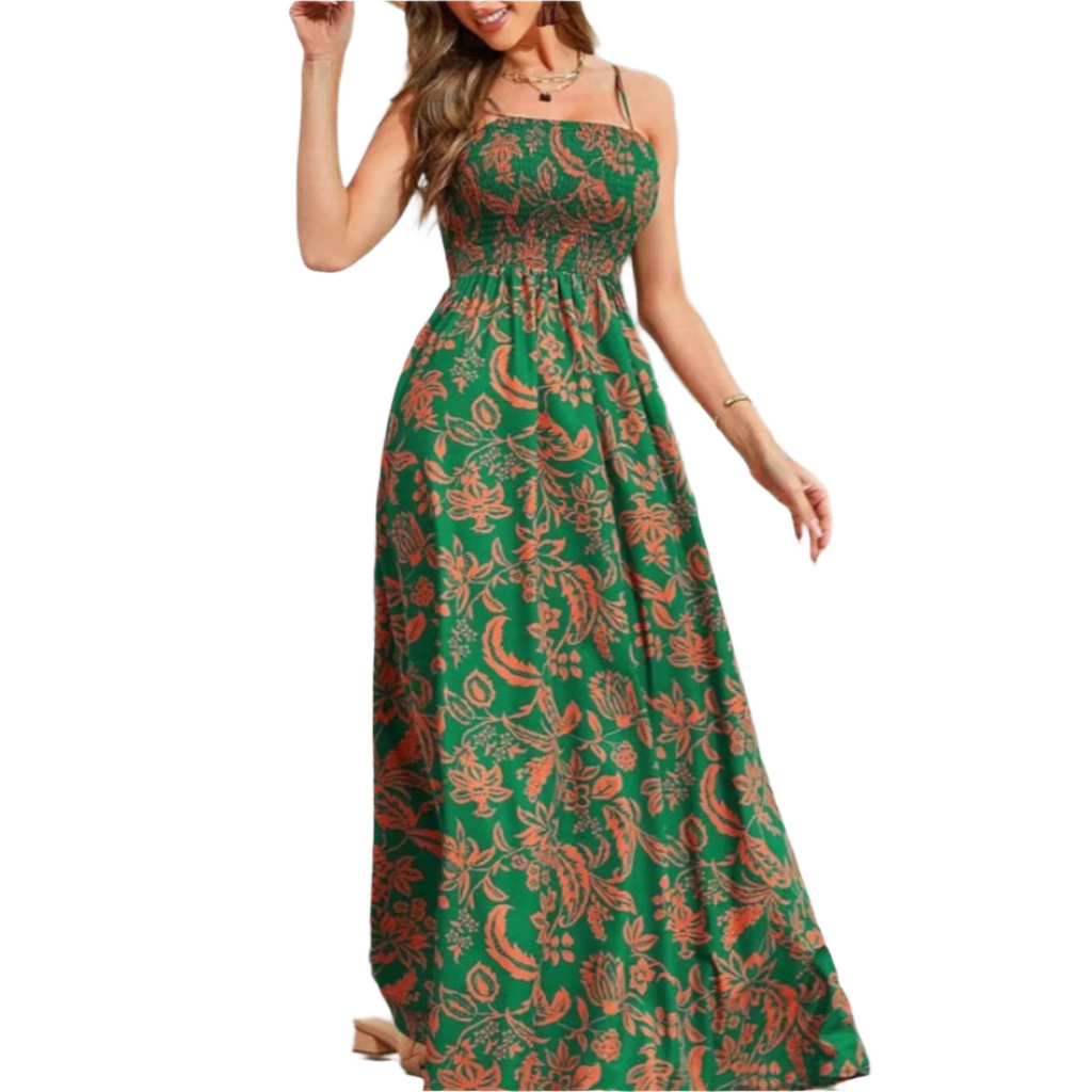 アラナ- スパゲッティ ストラップ フローリング マキシ ドレスは、気取らないエレガントさを演出したいときにぴったりのアイテムです。軽やかで流れるようなシルエットと繊細なスパゲッティストラップが特徴のこのドレスは、最高の快適さを提供しながら、体型を引き立てるようにデザインされています。ガーデンパーティー、ビーチ旅行、夕暮れ時のディナーなどに行くときでも、このマキシドレスを着ればスタイリッシュにリラックスできます。