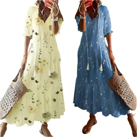 夏のパーティーに参加するときも、ビーチで夕日を楽しむときも、エリザ - フローラル ボヘミアン V ネック マキシ ドレスはあなたのライフスタイルに簡単に適応します。 V ネックと精巧な花柄プリントが時代を超えた美しさを醸し出し、軽量な生地が一日中快適さを保証します。