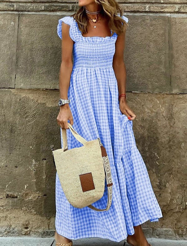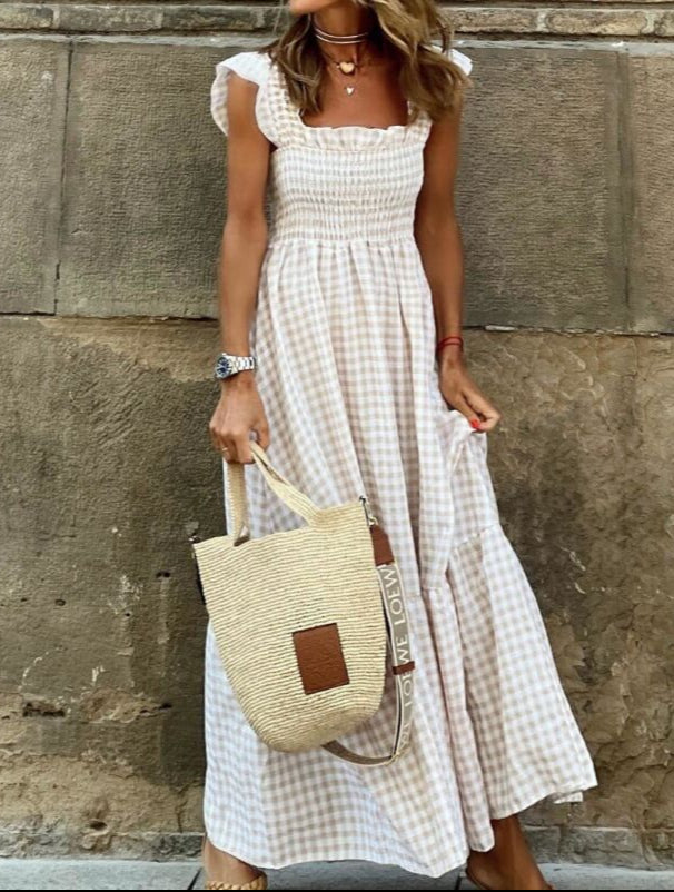 エレノア チェック マキシ ドレスで、優雅さと快適さの完璧な組み合わせを体験してください。このドレスは、スモックのボディスと流れるようなロングスカートで女性らしいシルエットを強調し、洗練された印象を与えるようにデザインされています。クラシックなチェック柄が時代を超えた雰囲気を醸し出し、カジュアルにもフォーマルにも最適です。