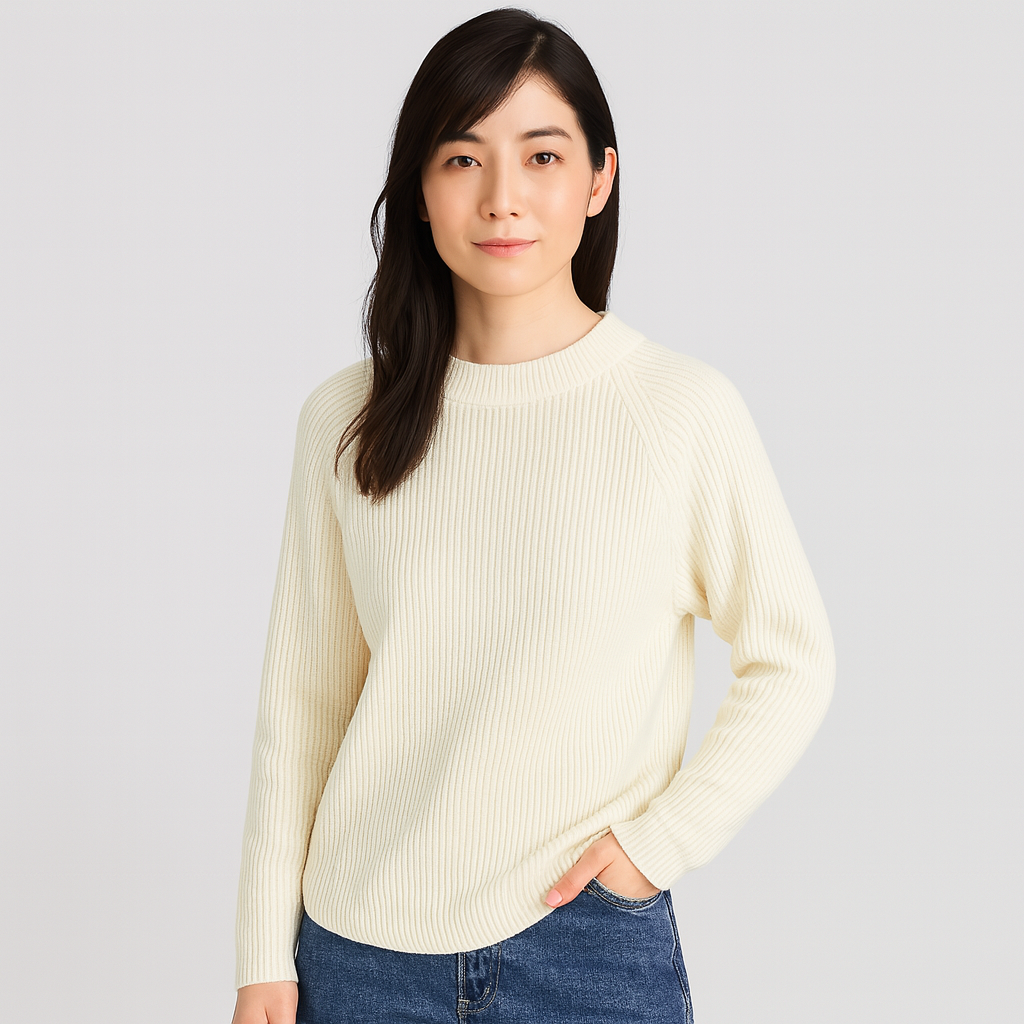 - リブ編みのトリム:さりげないディテールと立体感をプラス