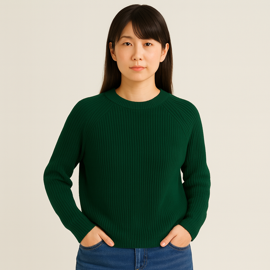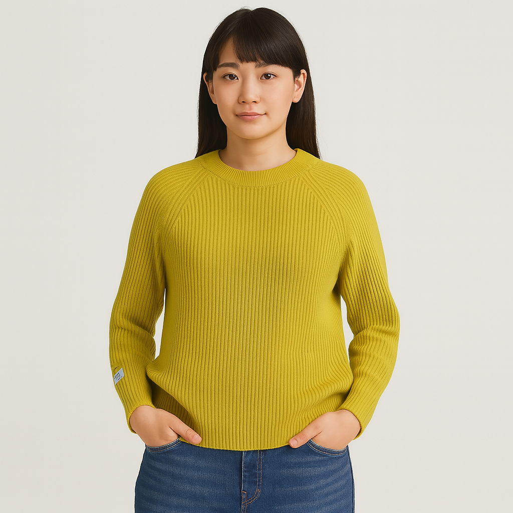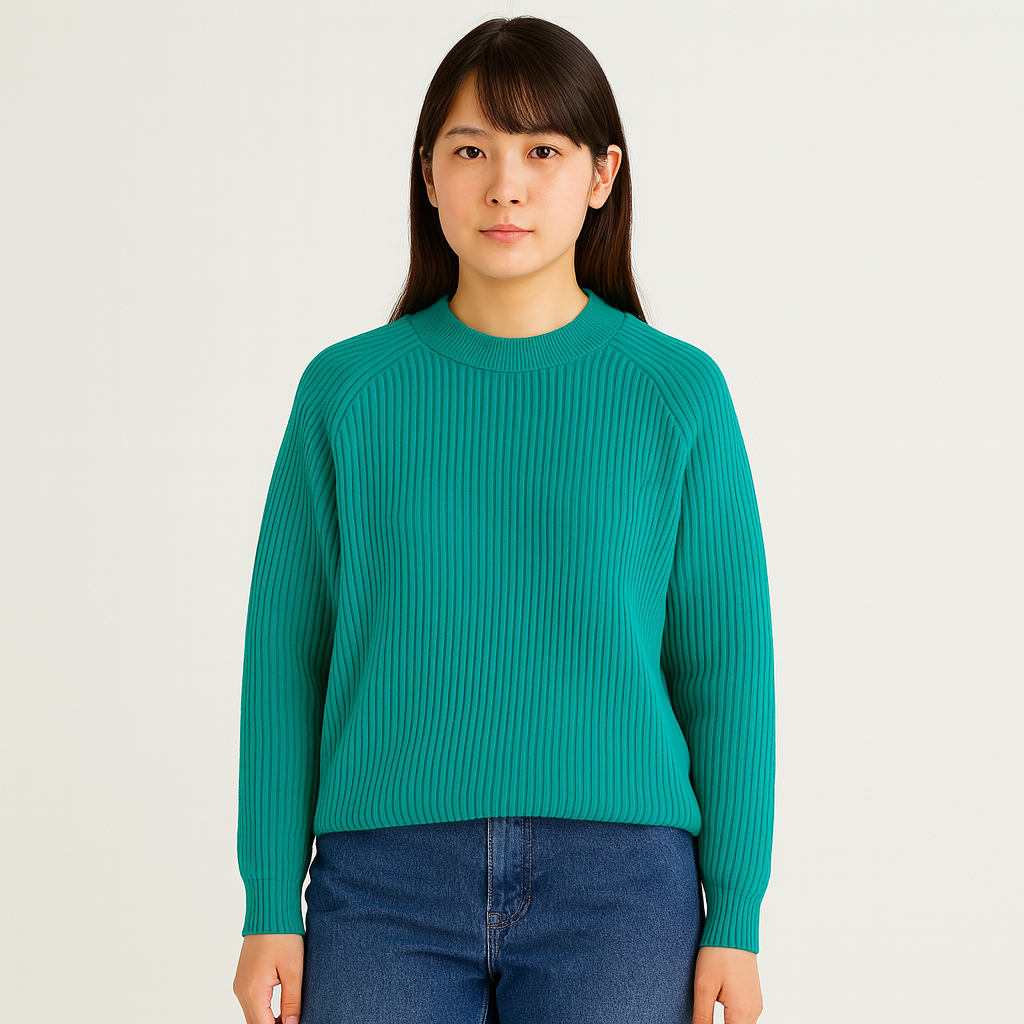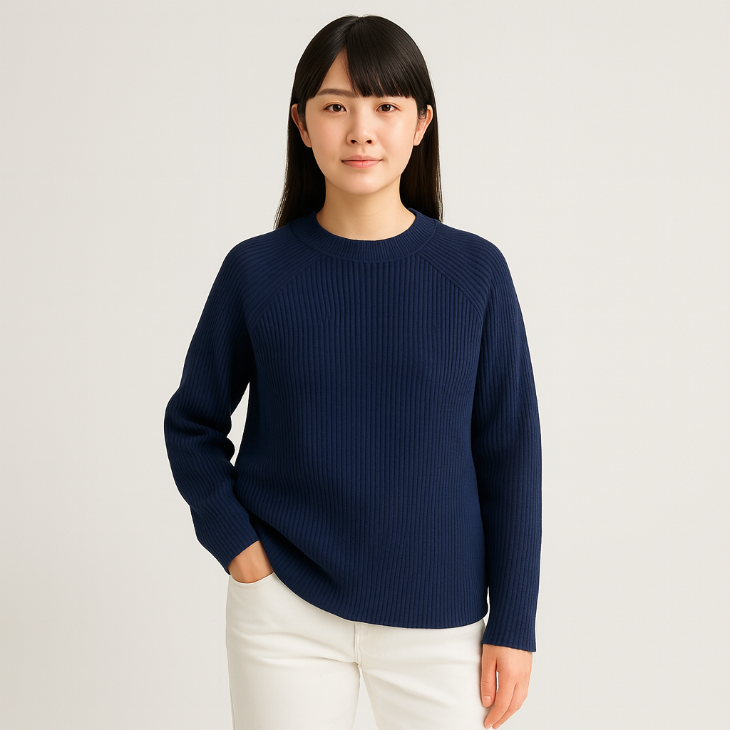 - クラシックなクルーネック:どんなスタイルにもマッチする万能なネックライン