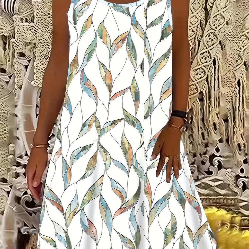 クララ - リーフ柄のモダンなノースリーブドレスは、大胆さと優雅さの完璧なバランスを実現します。目を引く葉の模様と美しいフィット感を備えたこのドレスは、カジュアルなイベントにもフォーマルなイベントにも最適です。ガーデンパーティーに参加するときも、一日の外出を楽しむときも、このドレスを着れば簡単に目立つことができます。