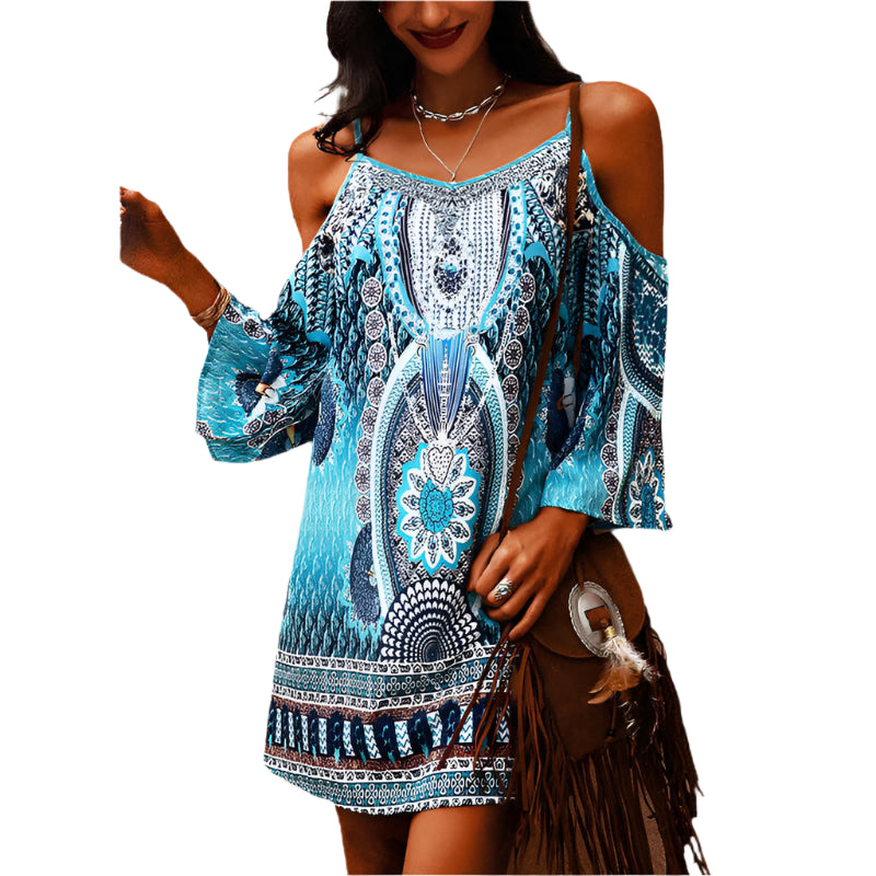 サミー - サマーオフショルダーブルードレスで暖かい季節を満喫しましょう。この魅力的なドレスは快適さとスタイルを完璧に兼ね備えており、晴れた日やカジュアルな外出に最適です。美しいブルーの色合いとオフショルダーのデザインが、あなたのワードローブに優雅な雰囲気を添えます。