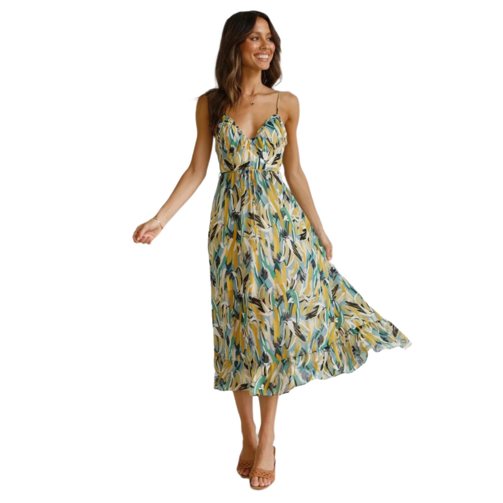 ジェラ- 印象的なサマードレスで優雅なひとときをお過ごしください。この美しいドレスは、スタイルと快適さを自然に組み合わせたユニークなパターンが特徴で、暖かく晴れた日にぴったりです。ブランチに行くときでも、カジュアルな外出のときでも、このドレスは忘れられない印象を残すための頼りになる選択肢です。