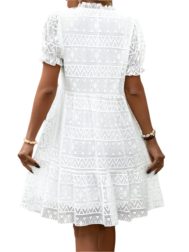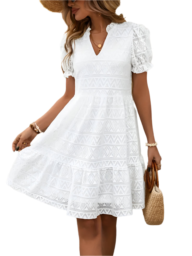 セラ– パフスリーブが付いたエレガントなドレスは、あなたのワードローブに時代を超えた優雅さを添えます。美しいシルエットと繊細なパフスリーブが特徴のこのドレスは、どんなシーンにも合う、洗練されながらも遊び心のあるルックスを提供します。フォーマルなイベントに行くときも、カジュアルな日帰り旅行を楽しむときも、このドレスは楽にシックな気分になれるようにデザインされています。