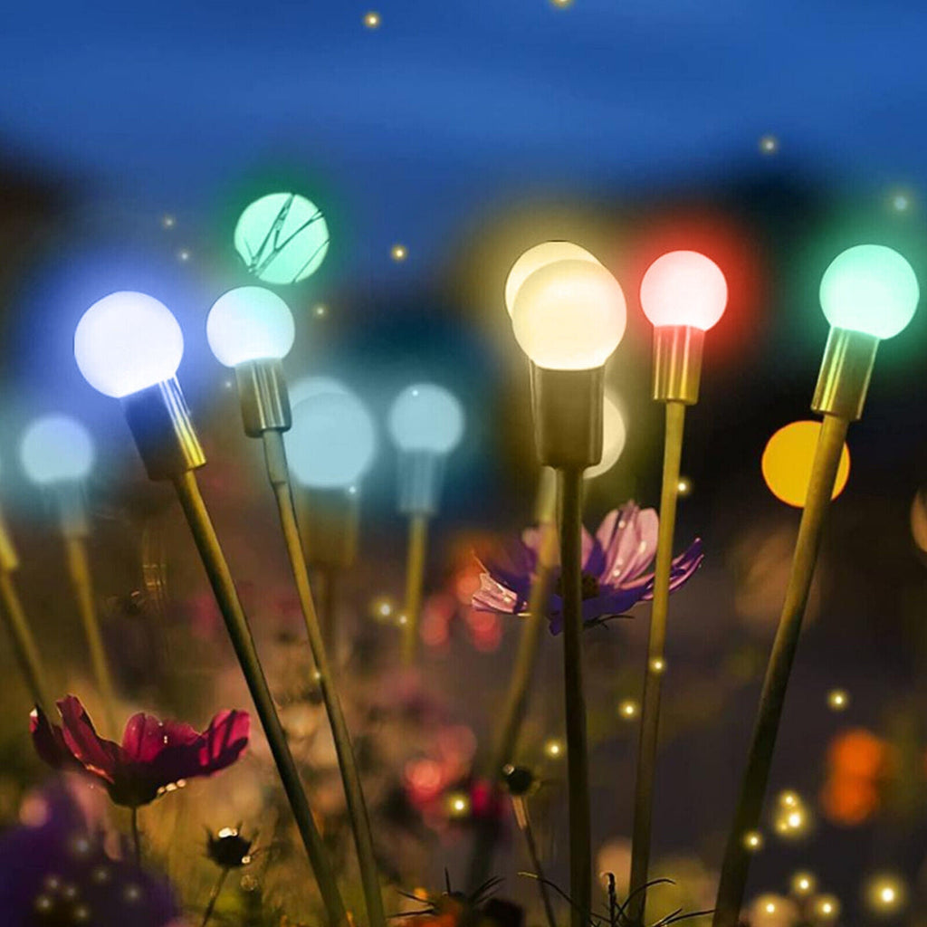 これらの装飾ランプは日中に自動的に充電され、夕暮れ時に優しく点灯します。柔軟な構造により、風の中で自然な動きが保証され、生きているホタルのような錯覚を与えます。庭、テラス、小道など、どこに設置しても、ケーブルや電池を必要とせず、雰囲気のある照明を演出できます。