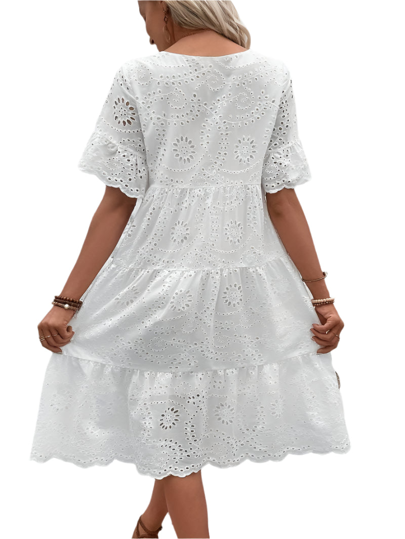快適さとスタイルの両方を追求してデザインされたカジュアルな半袖ドレス、ダリア– カジュアル半袖ドレスで季節を迎えましょう。ゆったりとしたフィット感とクラシックなラウンドネックで、カジュアルな日やインフォーマルな集まりに最適です。
