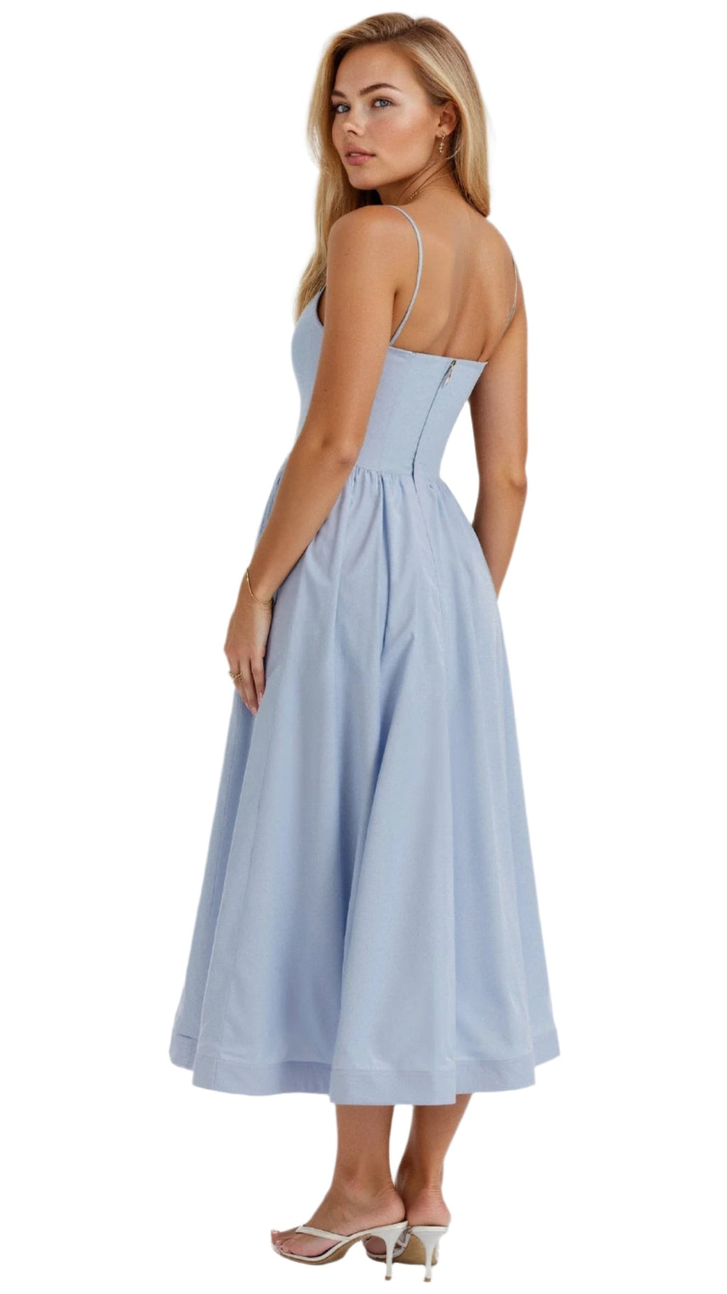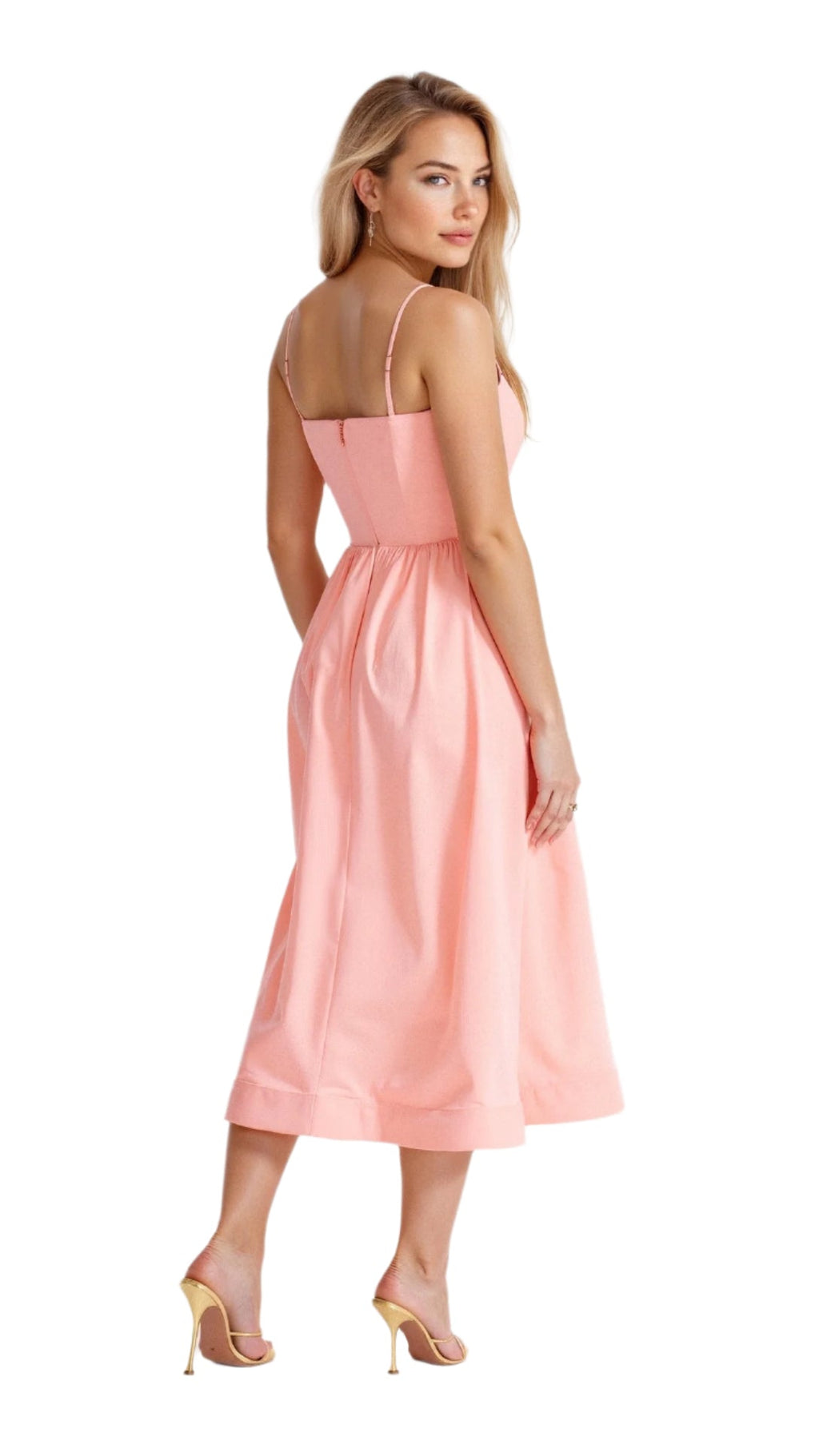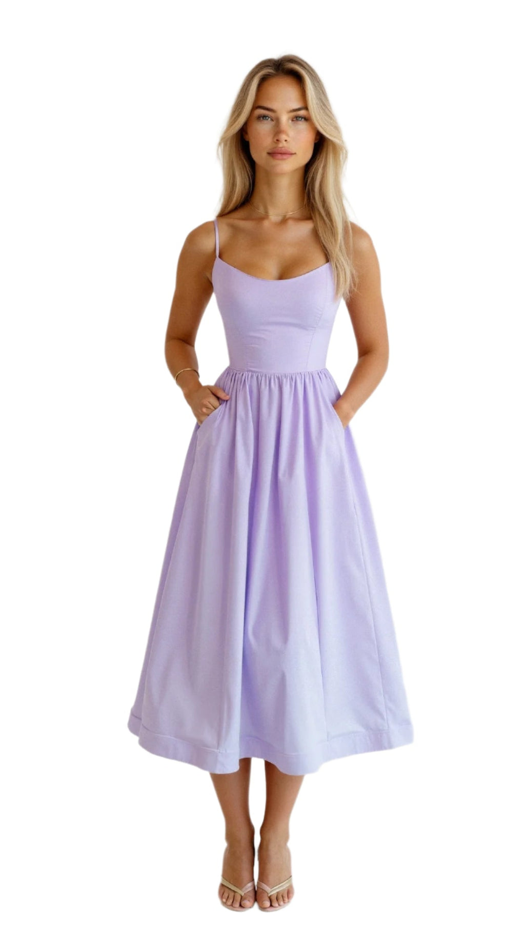 軽くてフェミニン、そして気負わずにスタイリッシュ – ダーシー- 流れるようなミディドレスは、毎日のエレガントさを追求した頼りになるドレスです。ブランチに行くときも、ガーデン パーティーに行くときも、このドレスは優雅に動き、魅力的なシルエットを作り出します。柔らかい生地が美しくドレープし、繊細なネックラインとくっきりとしたウエストが構造をプラスします。