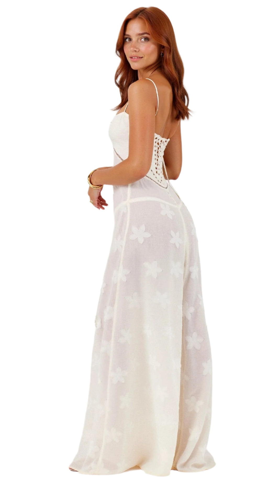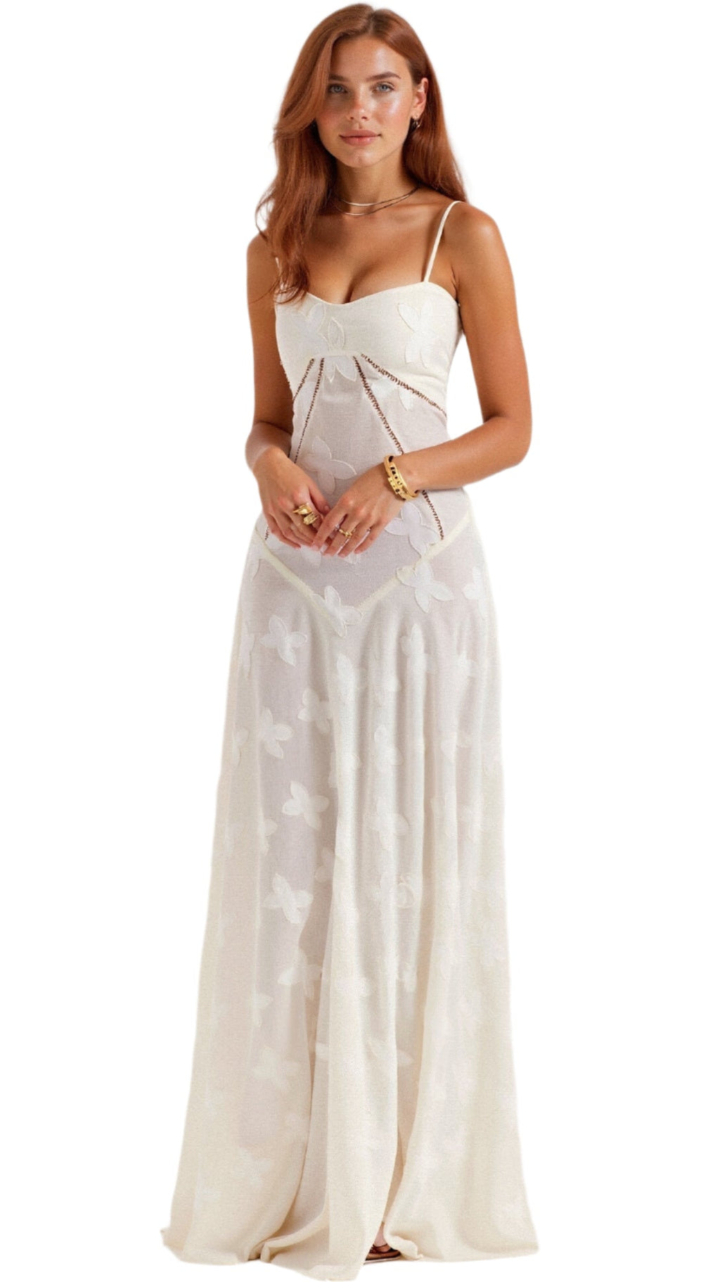 体型を美しく見せるようデザインされたこのマキシドレスは、締め付けることなく優しく体に沿って流れるようなカットが特徴です。透明な層が微妙な深みと質感を生み出し、どんなワードローブの中でも目を引くアイテムになります。サンダルでもヒールでも、控えめなエレガントさを醸し出します。