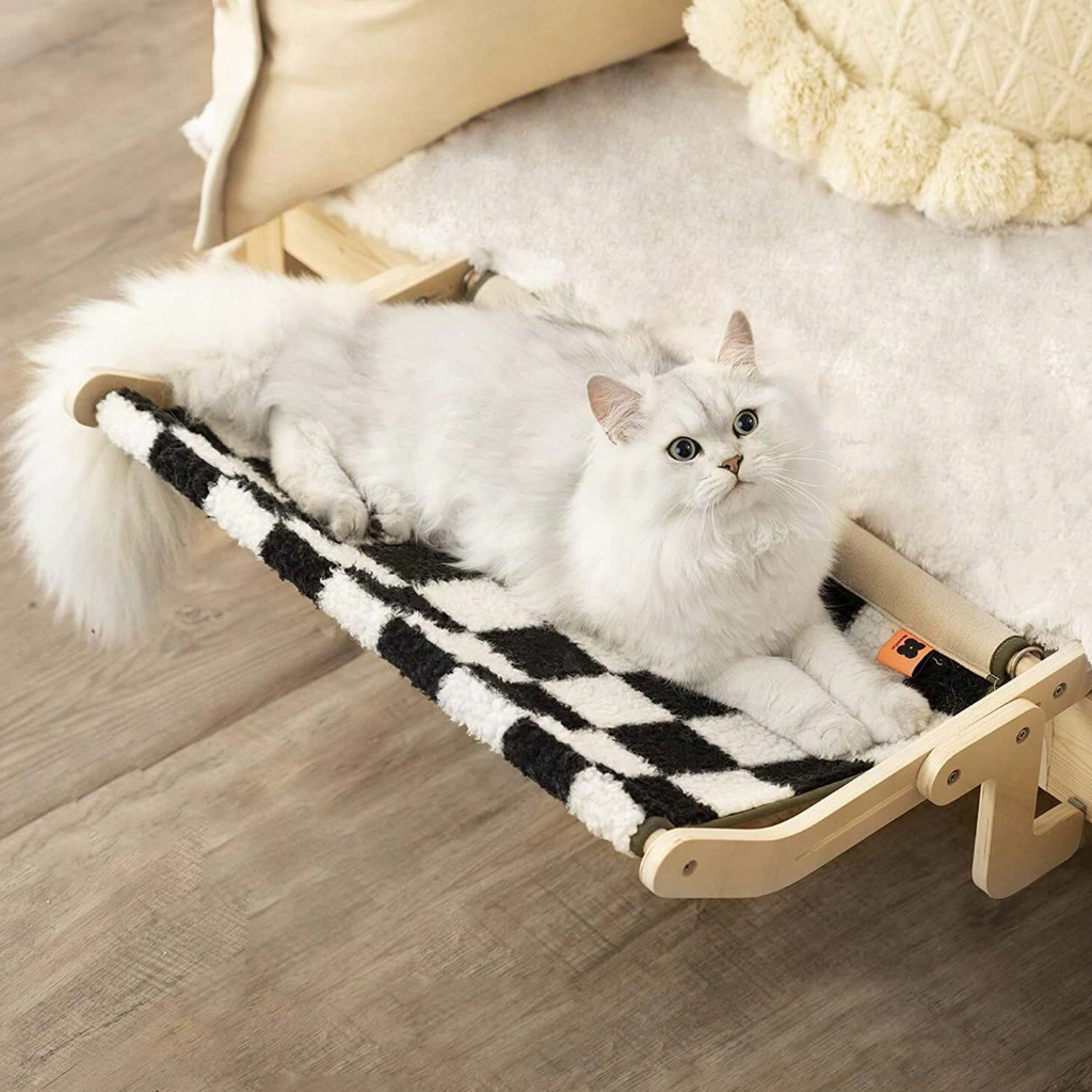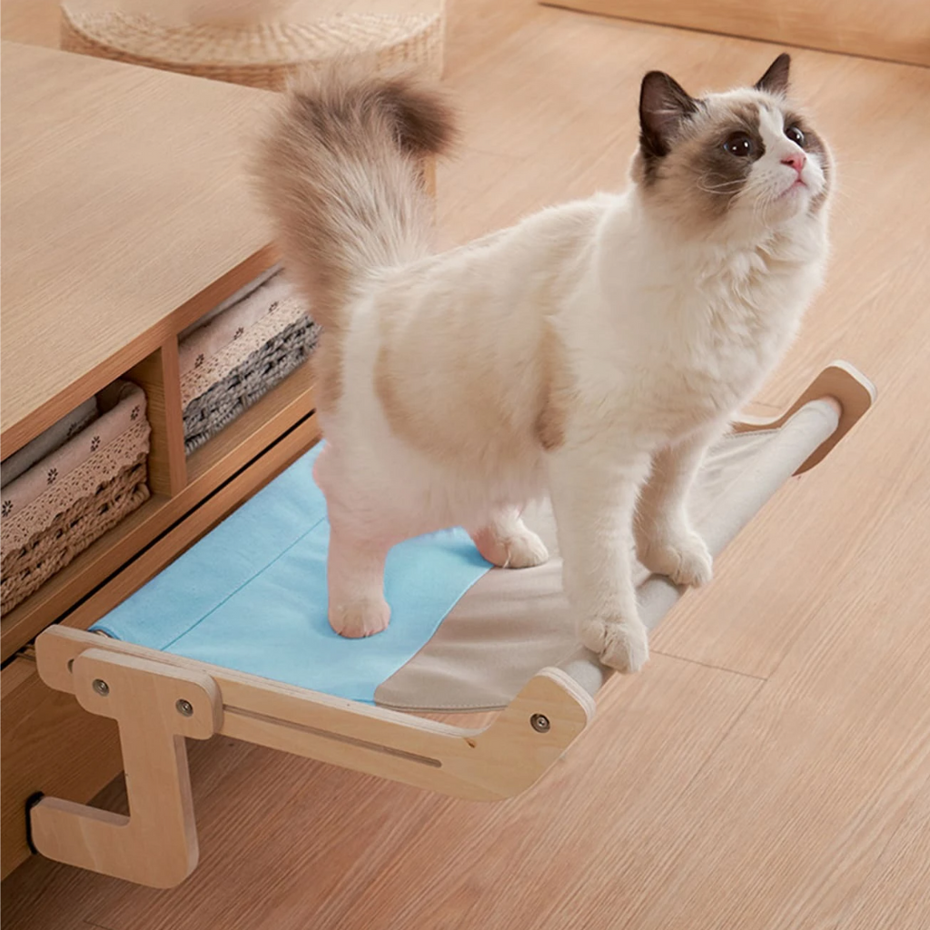 フェルナラ - 木製猫用ハンモック を使えば、どんな窓や壁も猫のお気に入りの場所にできます。ご自宅のインテリアに自然に溶け込むように設計されたこの木製ハンモックは、猫がリラックスしたり、観察したり、安心したりできる静かなオアシスを提供します。天然素材とミニマリストなデザインが、どんなお部屋にもスタイリッシュな雰囲気を添えます。