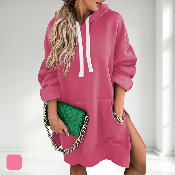 このオーバーサイズのフーディードレスは、究極の快適さとモダンなスタイルを兼ね備えています。リラックスした日や心地よい夜に最適で、リラックスフィットでありながらトレンド感をキープします。