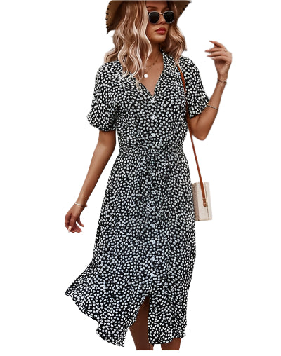 マリーナ - 花柄プリントの夏用ミディドレスで季節の美しさを満喫しましょう。この美しいミディドレスは繊細な花柄デザインが特徴で、あなたのワードローブに優雅な雰囲気を添えます。ガーデンパーティーに行くときも、カジュアルな一日の外出を楽しむときも、このドレスを着れば、気楽にスタイリッシュな気分になれます。