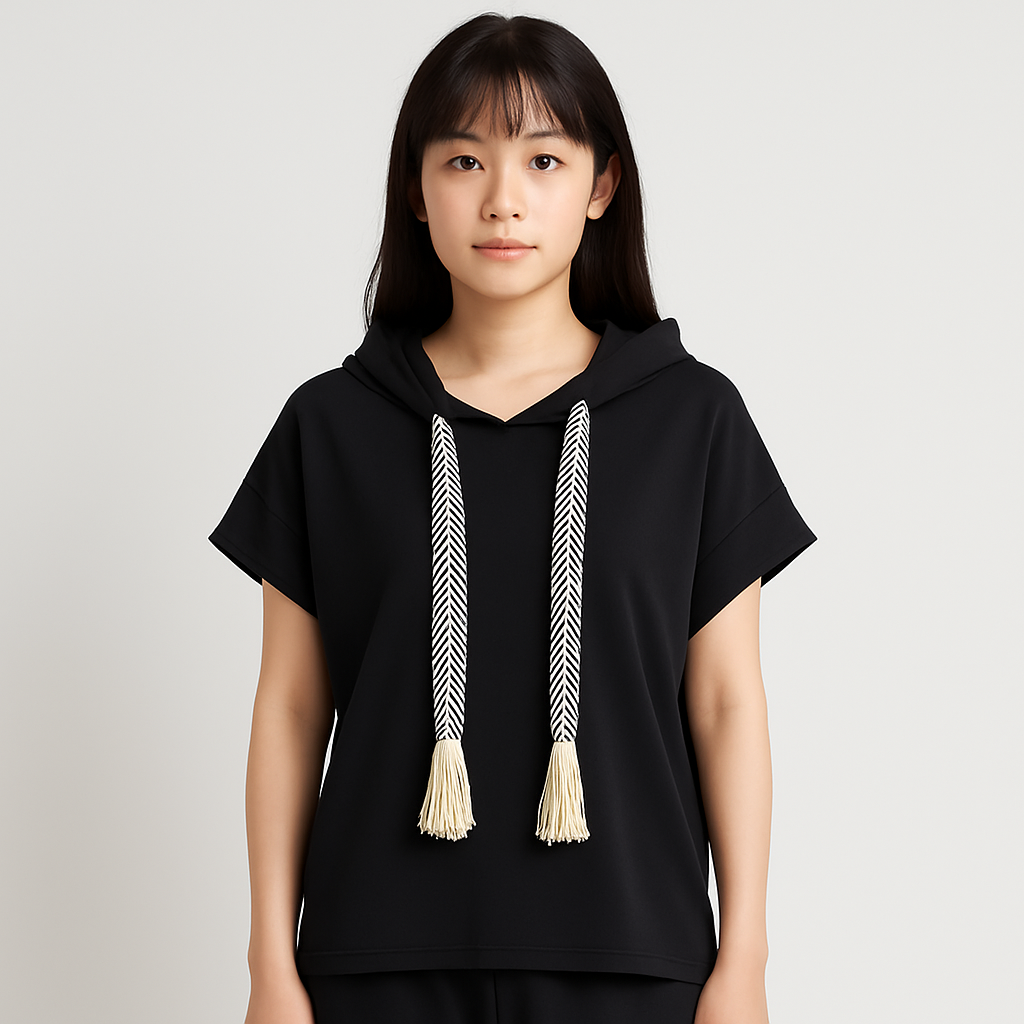 ドローストリングアクセント: ネックラインを調整できるスタイリッシュなディテール