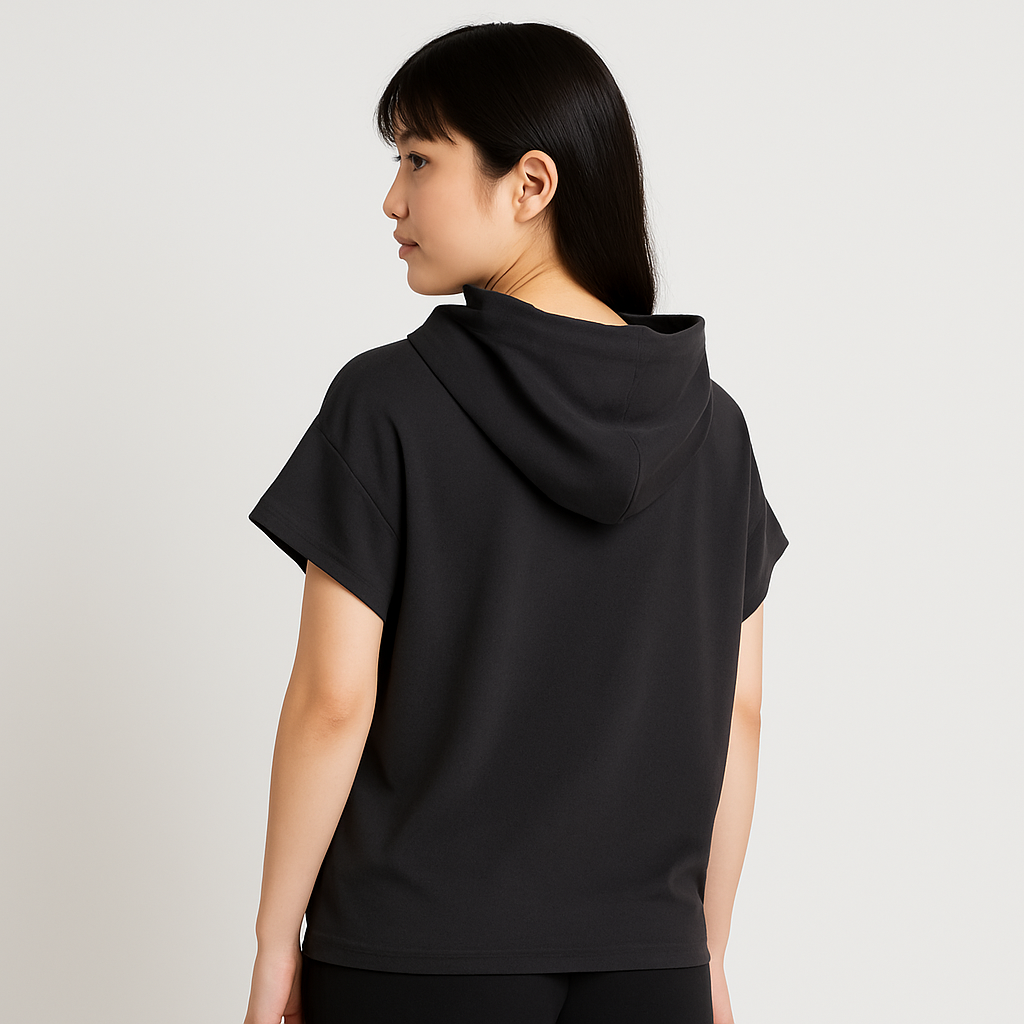 カジュアルスタイルを新しく定義する ミユ | コンテンポラリーフードジャケット。リラックスしたシルエット、流れるようなディテール、そしてモダンなフードデザインが、日常のワードローブにコンテンポラリーなエレガンスを添えます。レイヤードに最適で、快適さを損なうことなくスタイルを楽しめる万能アイテムです。