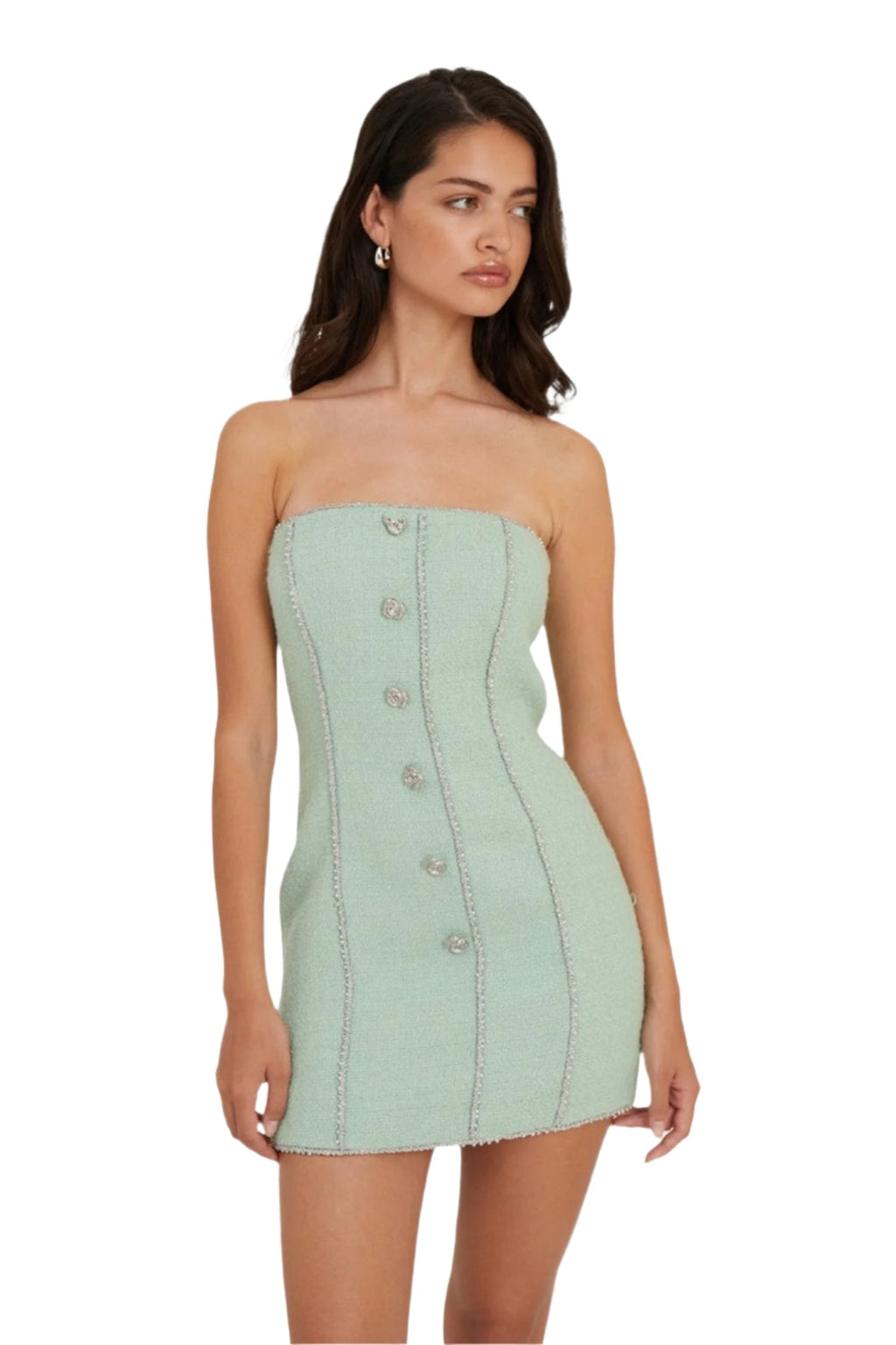 ミレリ – エレガントなブークレ ミニ ドレスは、構造的でありながら繊細なデザインで魅力と女性らしさを演出します。質感のあるブークレ生地と体にぴったりフィットするシルエットが特徴のこのミニドレスは、洗練さと遊び心のあるスタイルが完璧に融合されています。屋上でのディナーに行くときでも、ガーデン パーティーへの日帰り旅行のときでも、ミレリならシンプルな方法で目立つことができます。