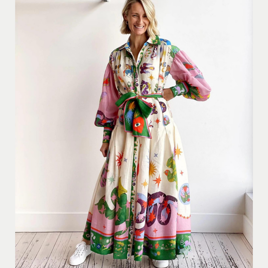 このロングドレスは、高品質で通気性のある生地で作られており、一日中快適に過ごせるだけでなく、美しいシルエットを実現します。カジュアルなお出かけにもフォーマルなイベントにも、エレガントで気取らない印象を与えます。