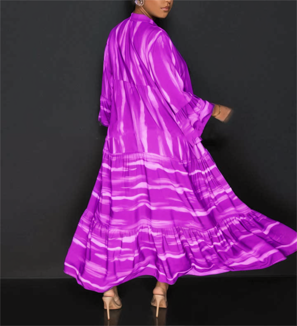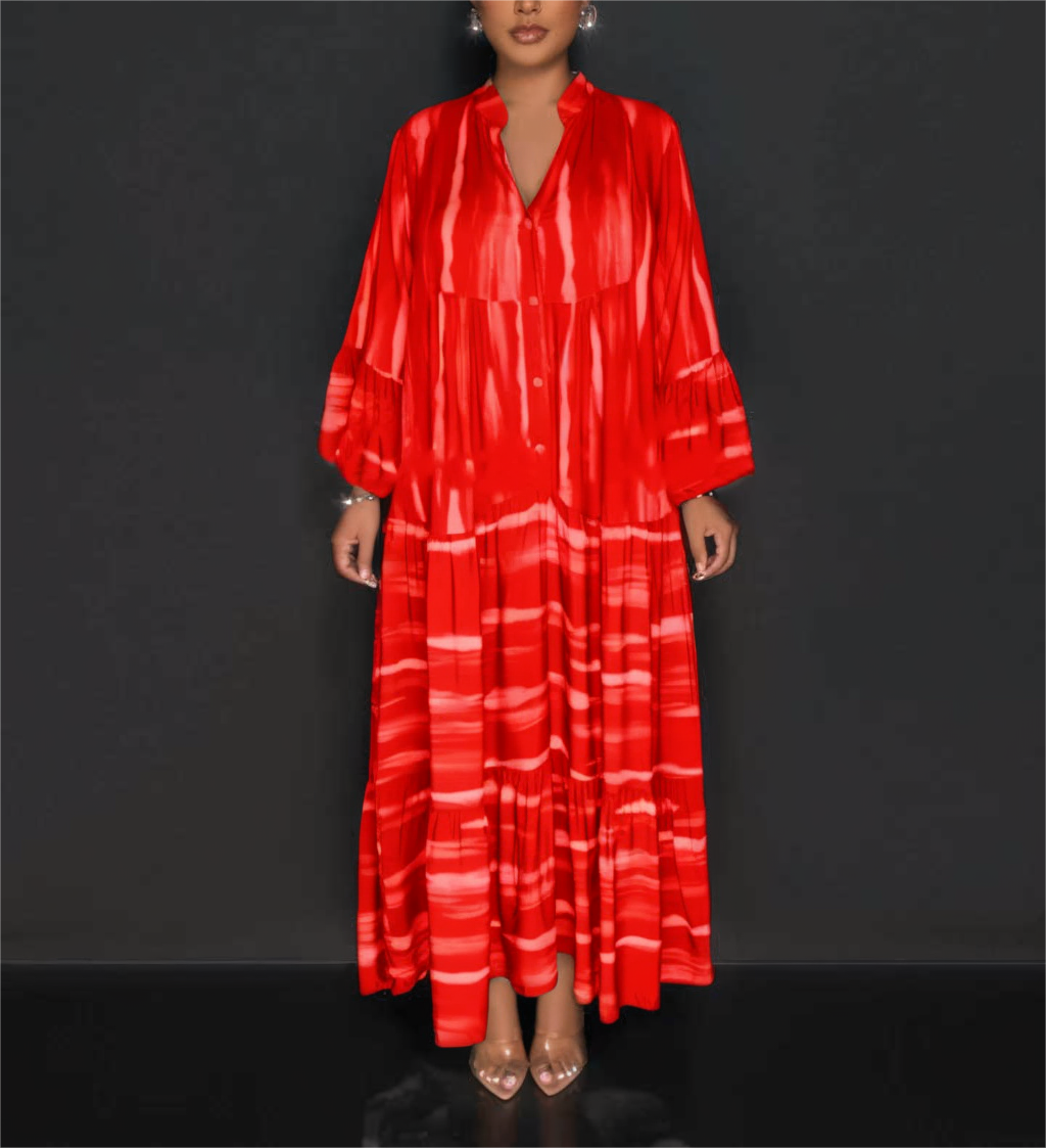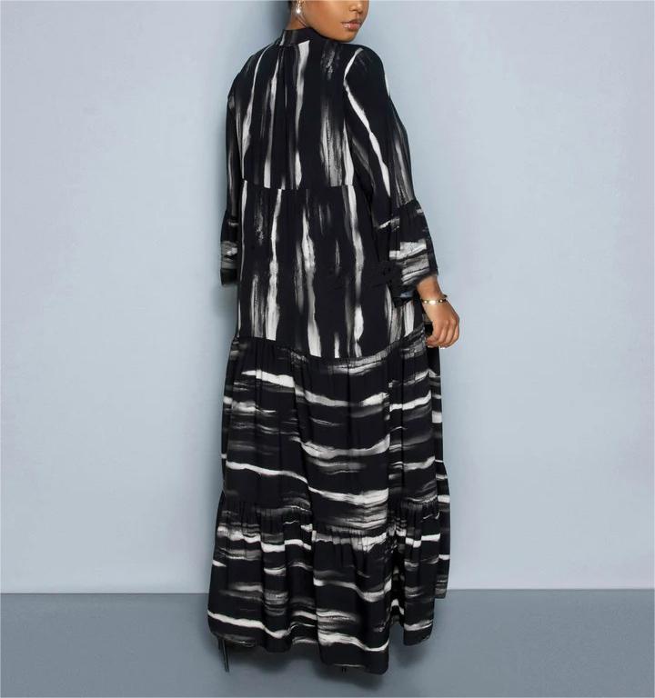 リリアン - ロングフリル袖のカジュアルなプリントアバヤドレス