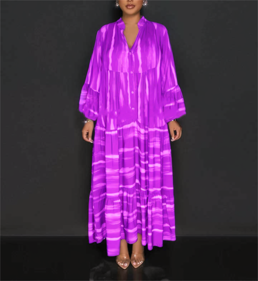 リリアン - 長いフリル袖が付いたカジュアルなプリントアバヤドレスは、快適さと洗練さを兼ね備えた素晴らしいデザインです。流れるようなシルエットと精巧なプリントが特徴のこのドレスは、どんなシーンにもぴったりです。