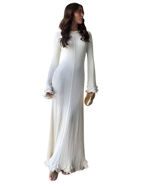 - 床までの長さのデザイン: あらゆる体型に、優雅で長く見える印象を与えます。
