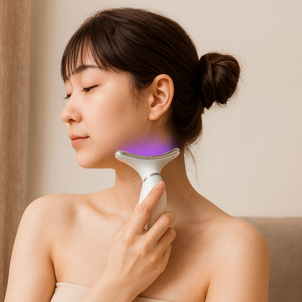 ルミバイブ 充電式フェイス&ネックマッサージャーで、スキンケアルーティンを最適化しましょう。優しい振動、温熱療法、LEDライトテクノロジーが、お肌の若返りを促し、血行を促進し、若々しい輝きを与えます。USB充電式で持ち運びにも便利なこのデバイスは、ご自宅での使用はもちろん、スキンケア愛好家への素敵なギフトにも最適です。