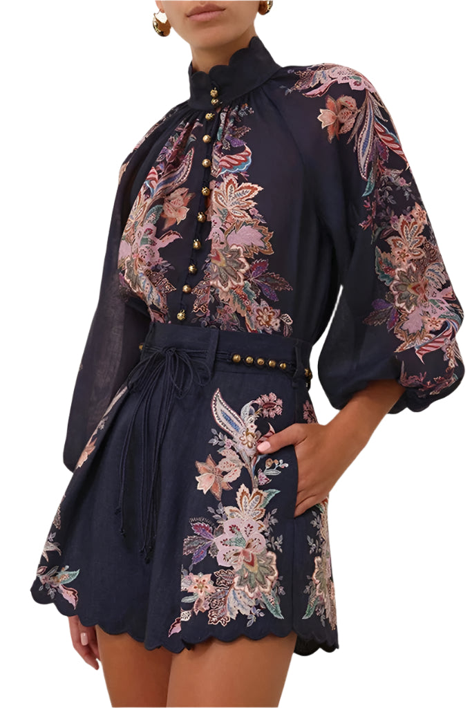 快適さを念頭にデザインされたこのセットは、時代を超えたふんわりとしたブラウスとテーラードショーツを組み合わせた完璧な夏の装いです。自宅でくつろいでいるときも、友人とブランチをとっているときも、街を散策しているときも、風通しの良いデザインが一日中快適に過ごせます。