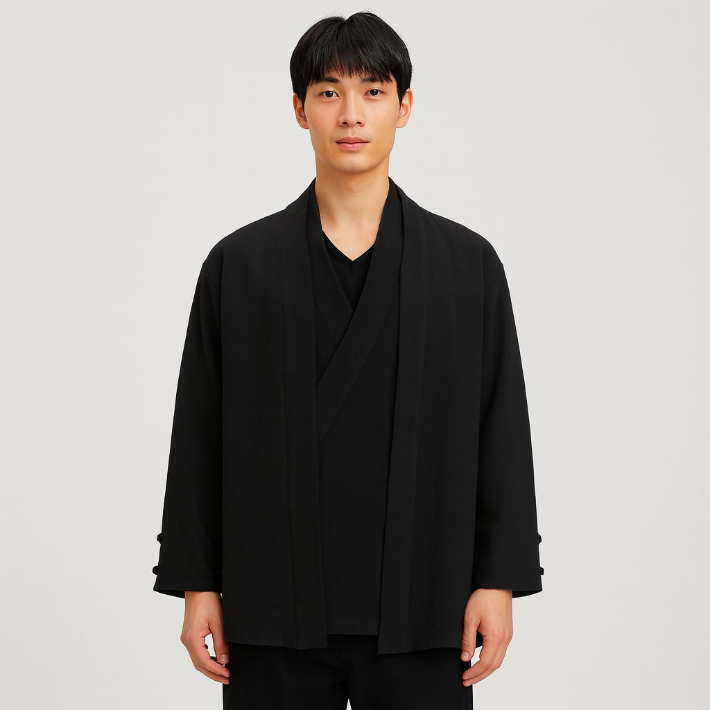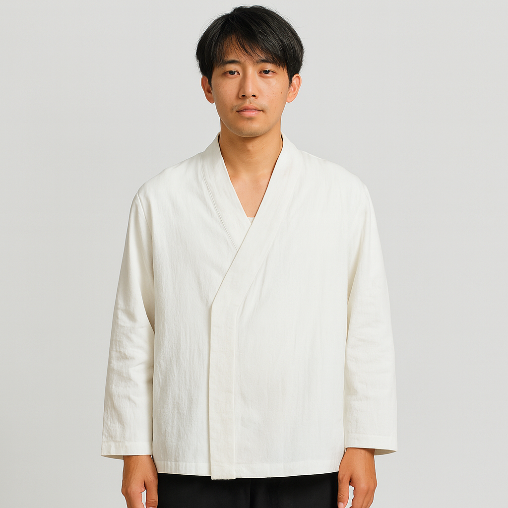 レンジ|モダン着物ジャケットで、洗練されたカジュアルウェアの新しいレベルへ。日本の伝統的な優雅さとモダンな快適さを融合させ、日常使いから旅行、夜のお出かけまで幅広く活躍します。ミニマルなラインとリラックスしたシルエットが、快適さを損なうことなく上品さを演出します。