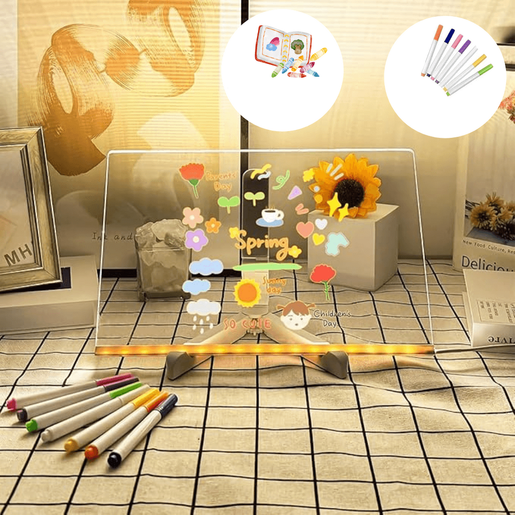児童文学 - LED マジック ドローイング ボードでお子様の芸術の旅を変えましょう。この革新的な描画ボードは、子供たちが光に触れるだけで光る傑作を作れるようにすることで、想像力を生き生きとさせます。遊び、学習、リラックスに最適です!